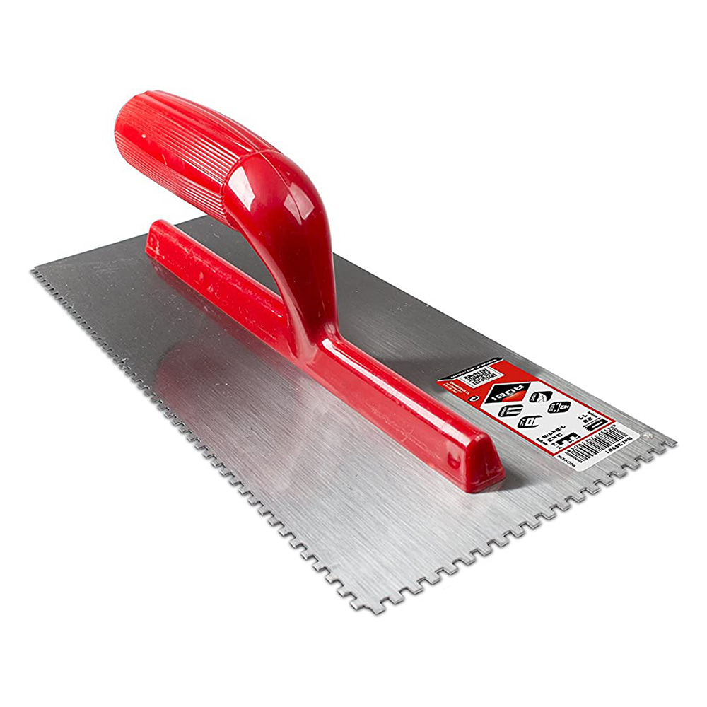 • Plate notched trowel: 11″ x 4″ (28 x 12 cm.)